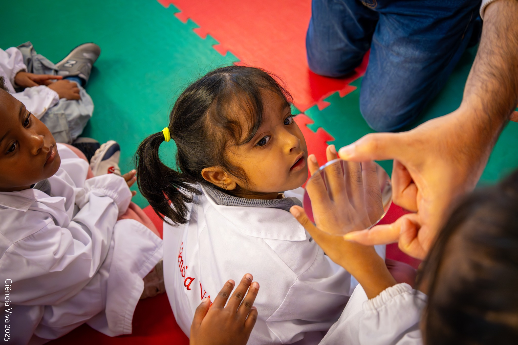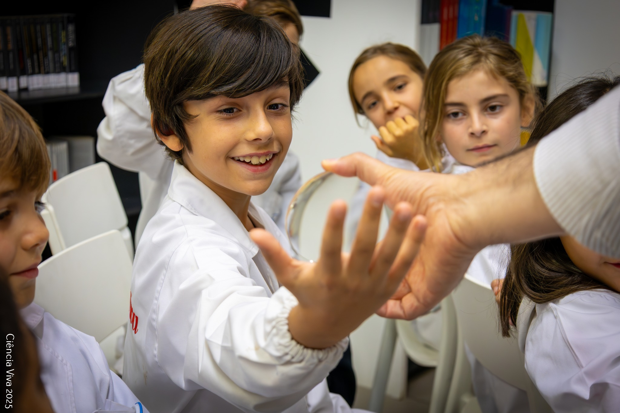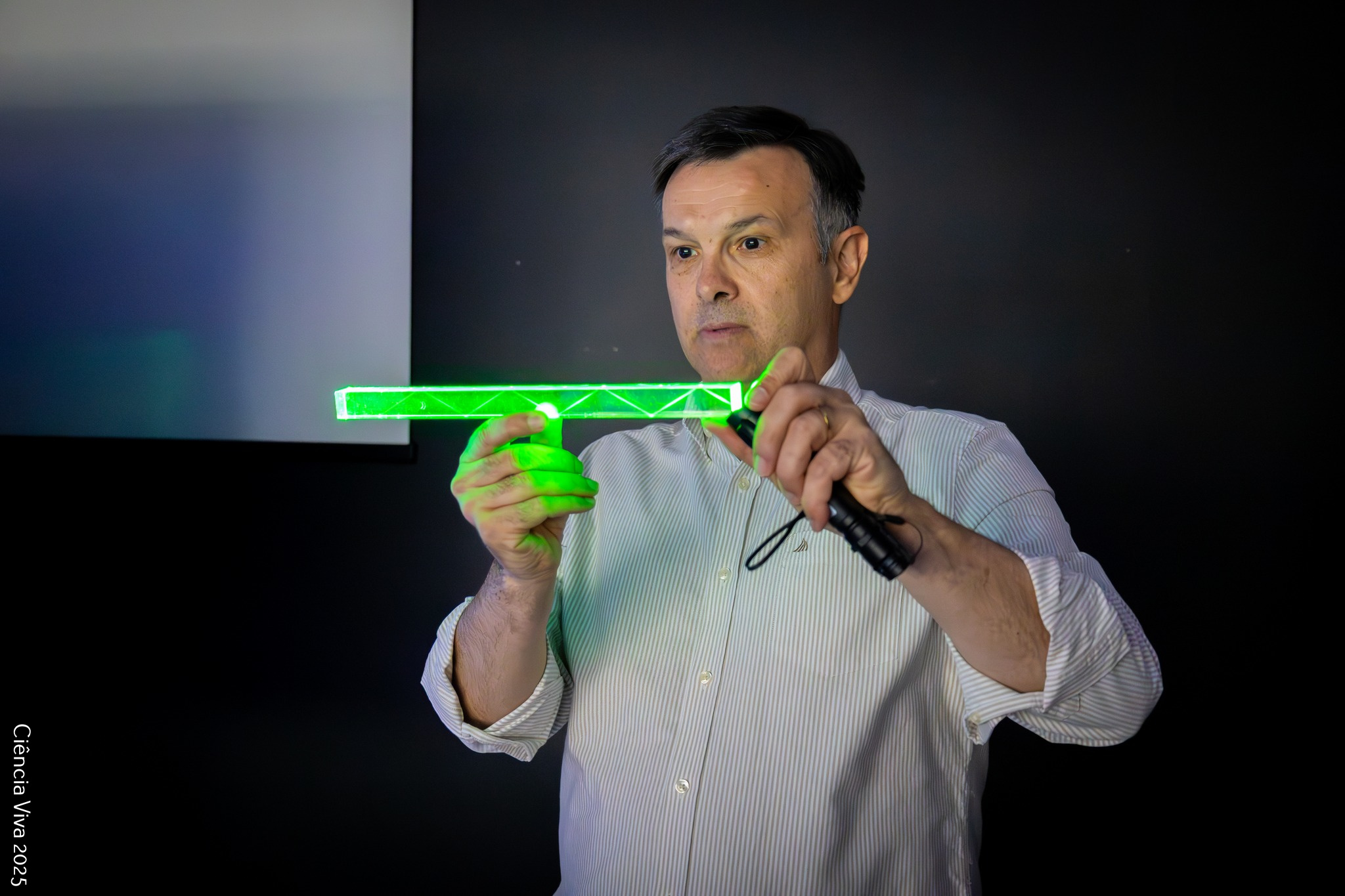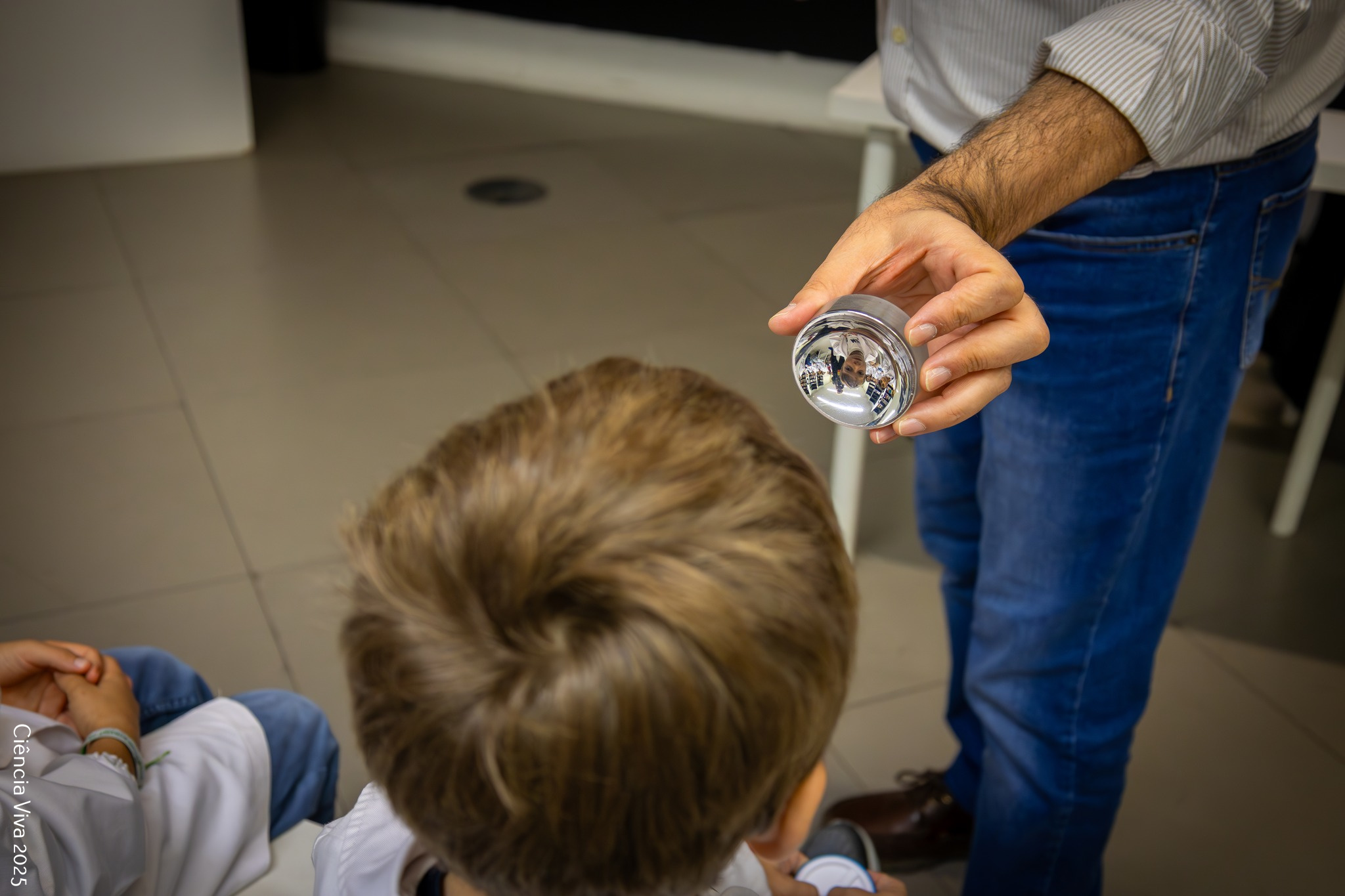 No “Encontro com o Cientista”, as crianças do JI n.º 1 da Pena e os alunos da EB Teixeira de Pascoais e da EB Santo Condestável receberam o físico Alexandre Cabral, do Instituto de Astronomia da Faculdade de Ciências da Universidade de Lisboa. O cientista explicou que aquilo de que mais gosta é construir máquinas para estudar a luz. Falou sobre a importância do telescópio no estudo do Universo e recordou que o primeiro a utilizá-lo foi Galileu Galilei, no século XVII, tendo descoberto as quatro luas de Júpiter. Referiu-se ainda à tabela periódica e explicou como o espectro da luz permite identificar os elementos que compõem os astros. Os alunos tiveram a oportunidade de ver, em vídeo, o trabalho do cientista nos grandes telescópios do deserto do Atacama, onde participa na instalação de lentes para o estudo dos espectros. Com as crianças do JI, o cientista mostrou alguns fenómenos da luz, sendo que o ponto alto da sessão foi o momento em que se conseguiu observar o arco-íris nas batas das crianças. No final, respondeu a várias perguntas sobre o Sistema Solar, os buracos negros e as órbitas, lembrando que, para ser cientista, é preciso estudar sempre — e que tudo começa por fazer muitas perguntas!