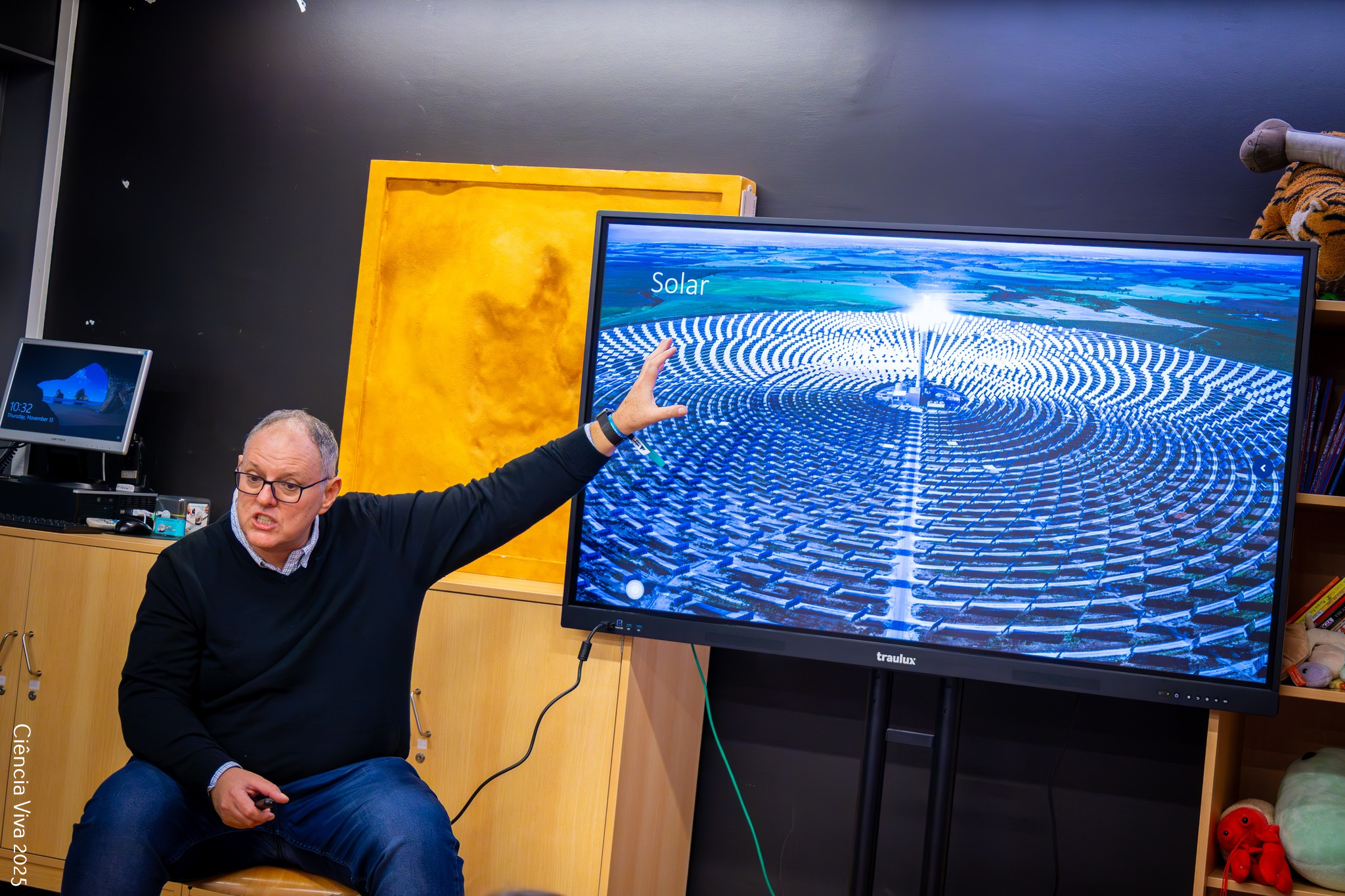 Em primeiro o cientista começou por explicar que são necessárias algumas características para se se cientista, principalmente ser curioso, fazer muitas perguntas e querer sempre saber mais. Posteriormente explicou que a eletricidade são eletrões em movimento, fazendo com que os aparelhos funcionem.