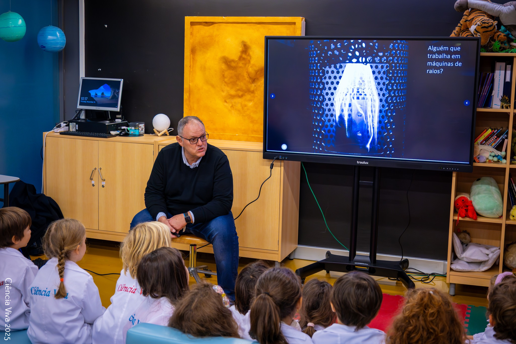 No “Encontro com Cientista” do dia 13/11/2025, as crianças do JI António José de Almeida e os estudantes do 4º ano das EB São João de Deus e EB Rosa Lobato Faria conheceram um pouco mais sobre o mundo da Física Nuclear com o cientista Bruno Gonçalves do Instituto Superior Técnico (IST), Presidente do Instituto de Plasmas e Fusão Nuclear, e ainda responsável pelo Grupo de Engenharia e Integração de Sistemas do IPFN.