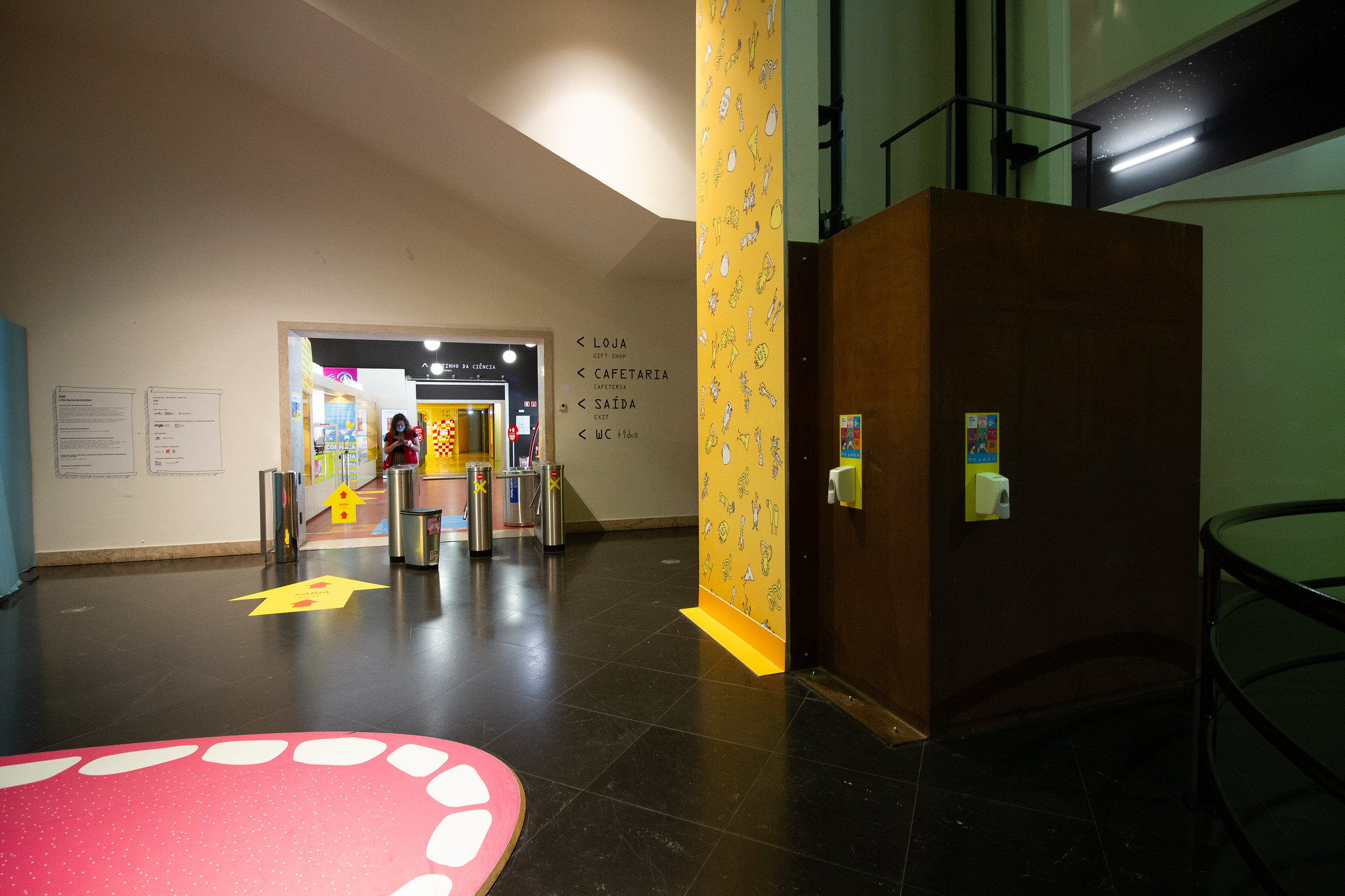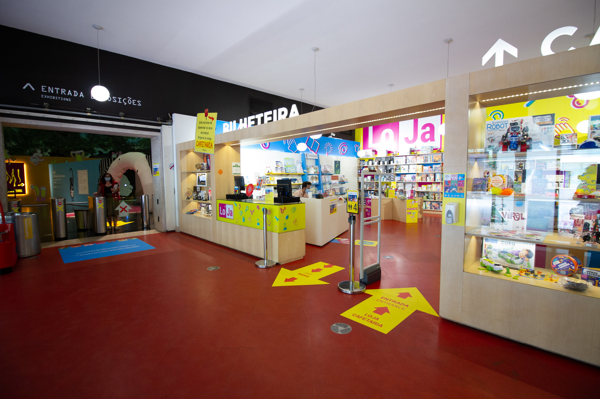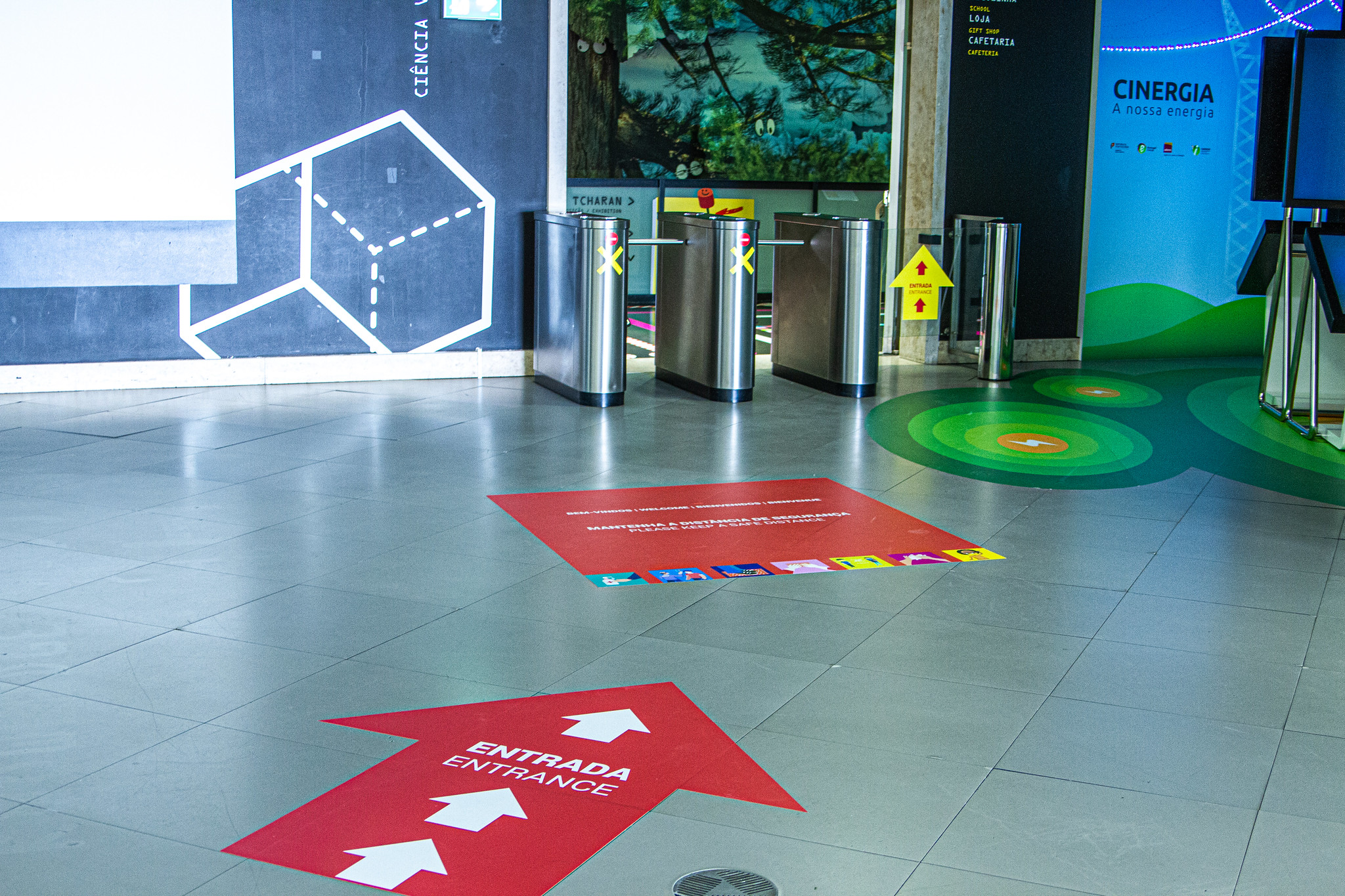 A entrada dos visitantes é realizada obrigatoriamente através do Piso 1 (pela rampa), onde está instalada a Bilheteira. Nesta área será efectuado o rastreamento da temperatura e serão distribuídas máscaras aos utentes que não disponham das mesmas. Será feita igualmente a higienização dos sapatos.