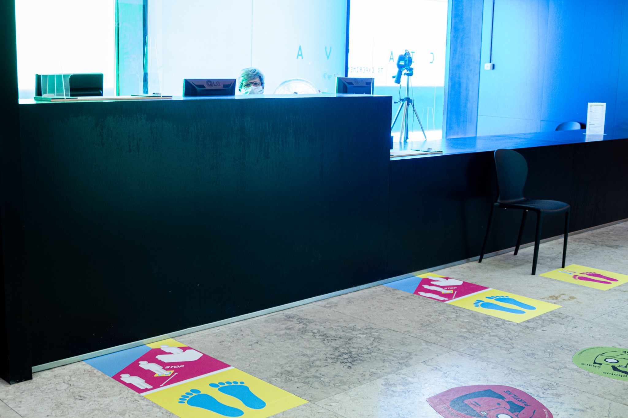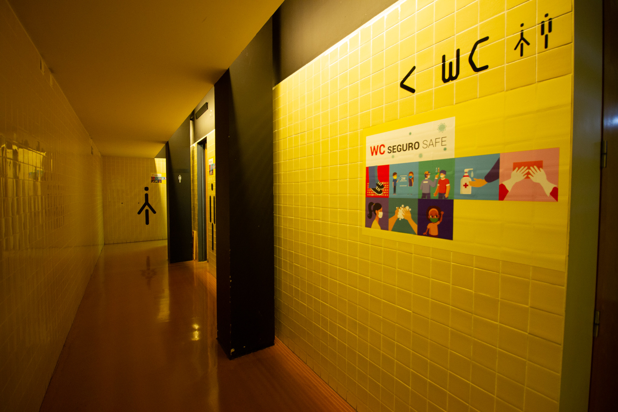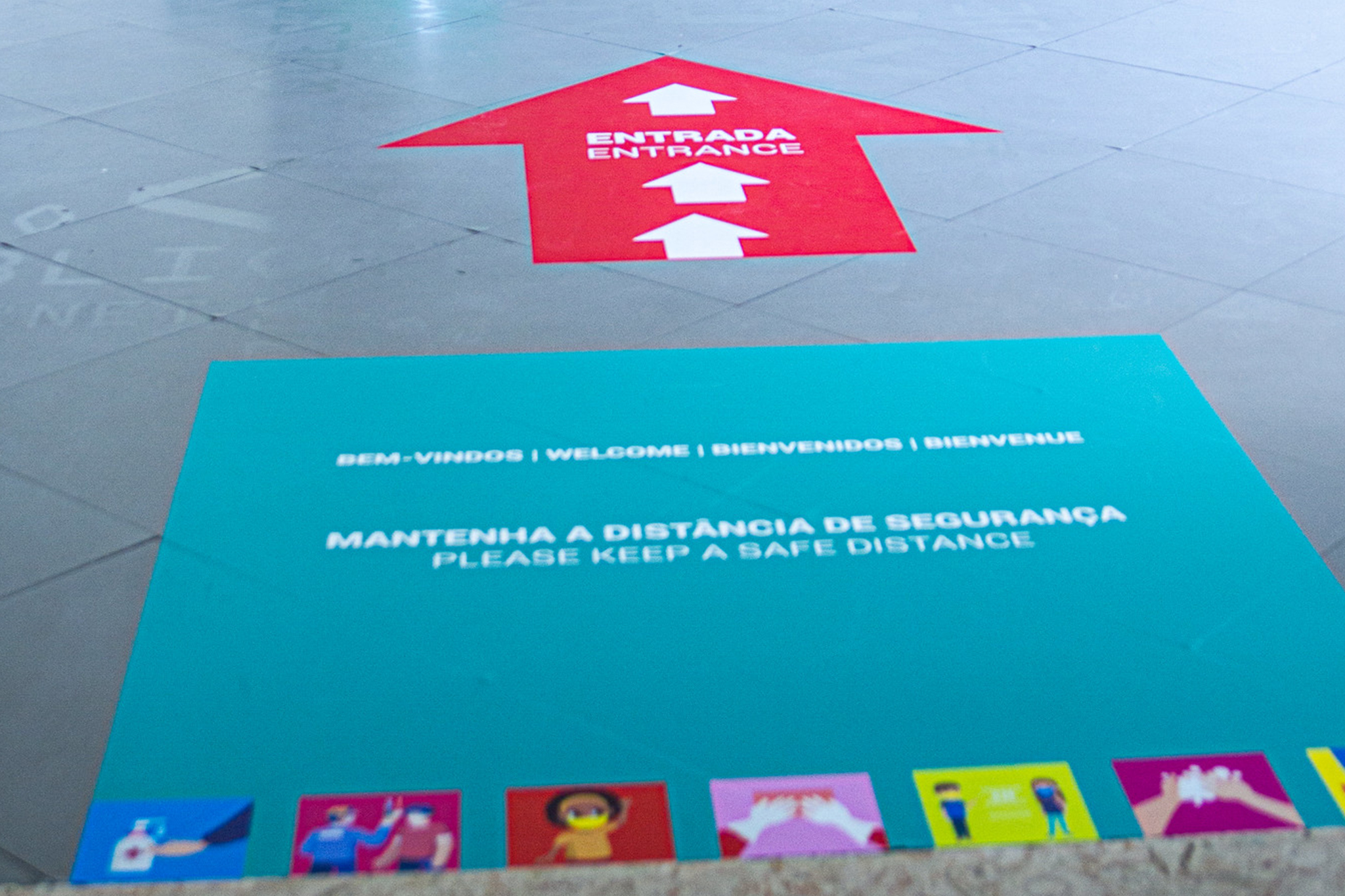 A entrada dos visitantes é realizada obrigatoriamente através do Piso 1 (pela rampa), onde está instalada a Bilheteira. Nesta área será efectuado o rastreamento da temperatura e serão distribuídas máscaras aos utentes que não disponham das mesmas. Será feita igualmente a higienização dos sapatos.