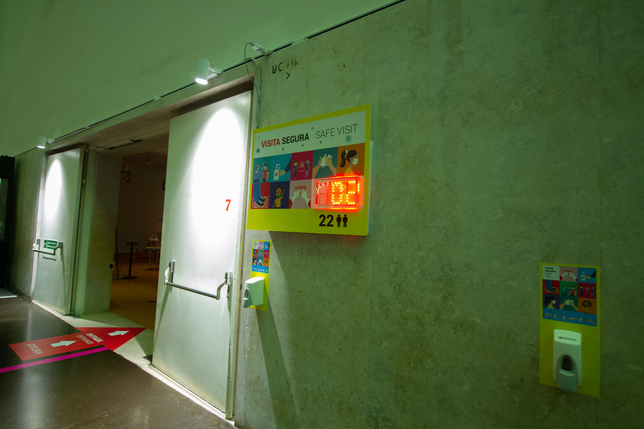 Estão instalados pontos de monitorização, à entrada de cada sala expositiva, para controlo da respectiva lotação.